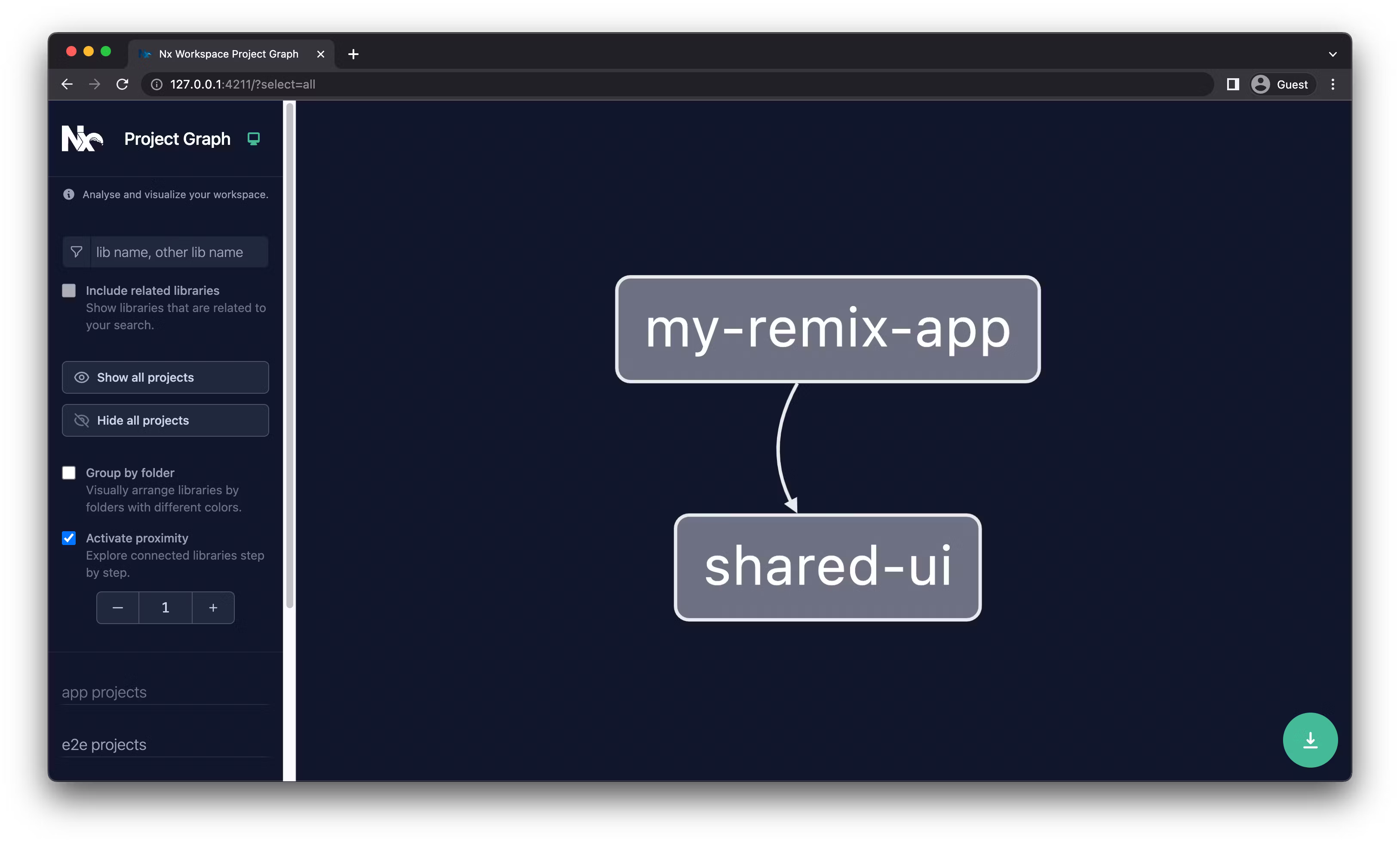 This launches an interactive visualization of the workspace's project graph with some advanced capabilities of filtering, debugging your workspace structure and more.